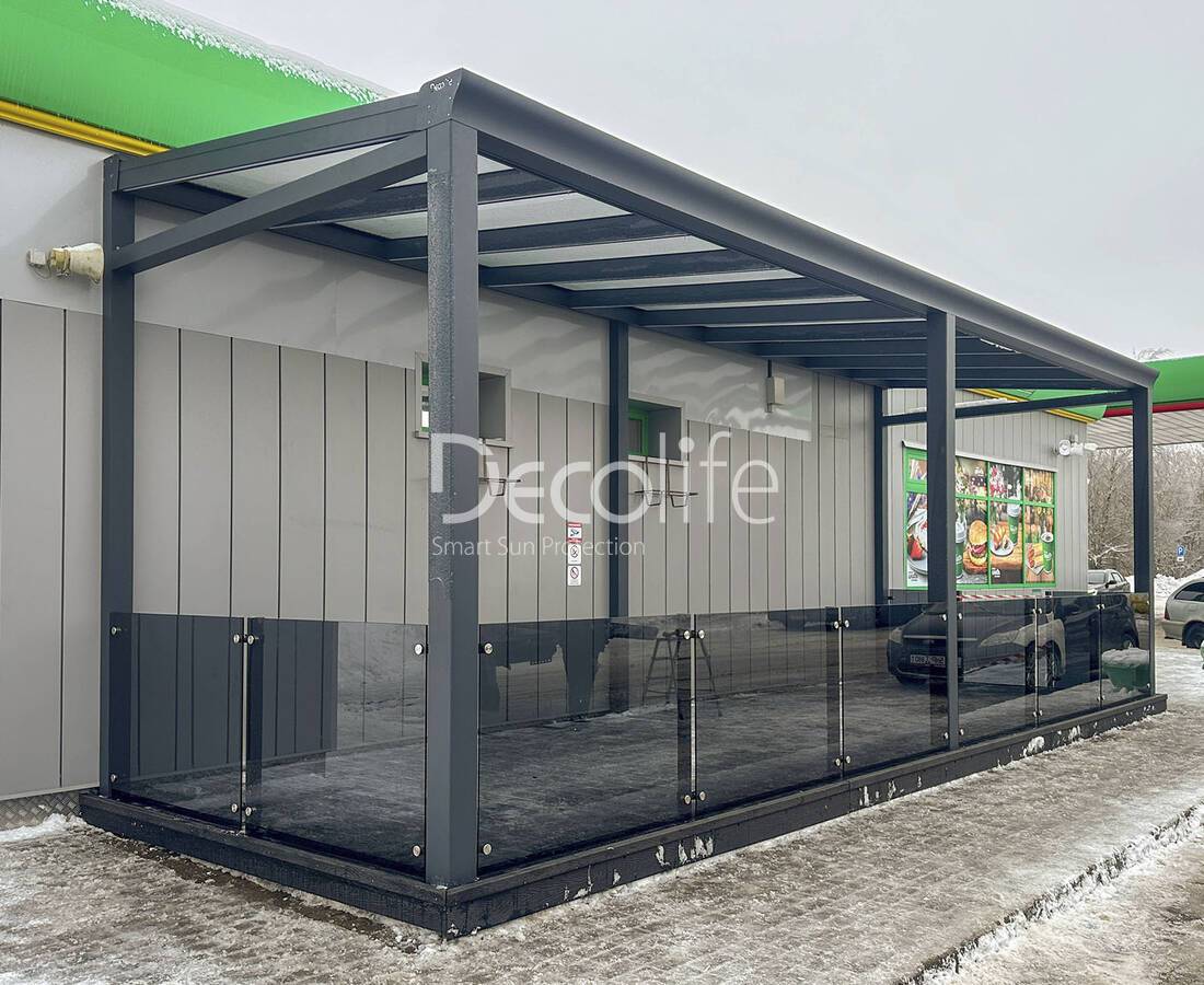 Пергола Decolife Bioclimatic В500-25П + Гильотинное остекление W500 - аг. Большевик