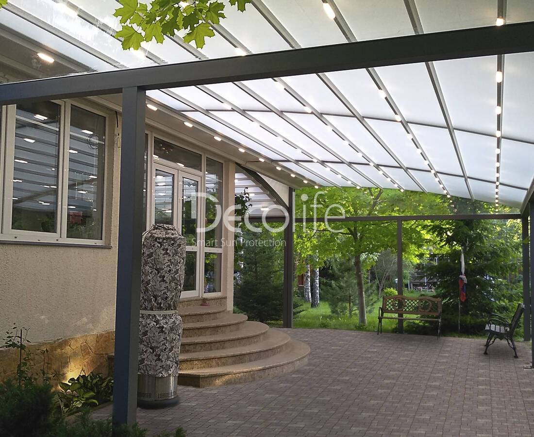 Пергола тентовая Decolife Project Light, реализовано нашим партнером ООО "Европейские Солнцезащитные Системы" - г. Зеленоградск
